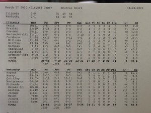 Kentucky was leading 51-41 with 17 minutes to play but couldn’t stretch out the advantage. The game was tight to the end but Kofi Coffman’s clutch baskets won it for the Big Ten Illini.