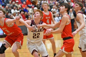 54 Tomcat Bill Kazee drilled his only 3-pointer to make it 75-73. Villers scored again for a 77-73 advantage, but Henderson came right back scored on a putback, then forced a turnover that allowed Kouns to get off a 15-footer at the buzzer that was all net and it was 77-77.